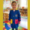 Este diseño no es la típica COTONA O DELANTAL aburrida; es una pieza llena de personalidad que combina el clásico azul escolar con detalles vibrantes que estimulan la creatividad.